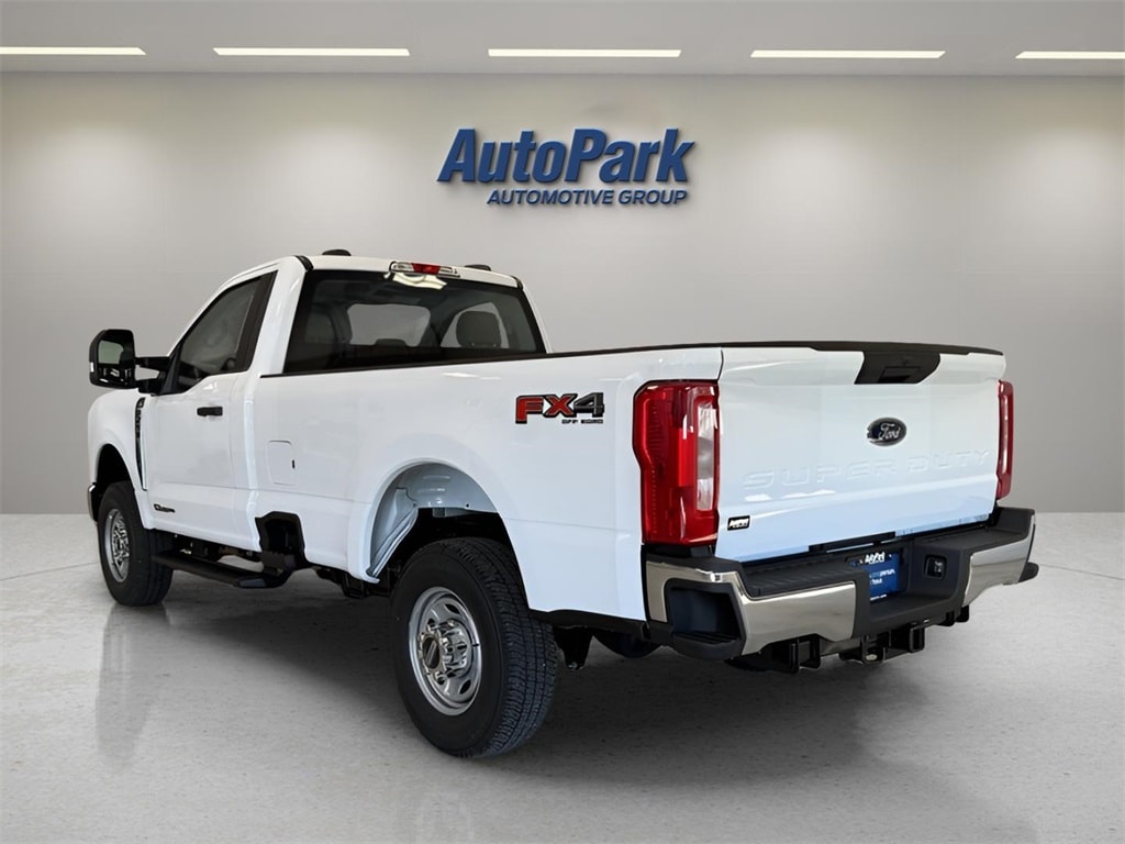 Vehicle Is Equipped With FX4 Off-Road Package (Hill Descent Control, Off-Road Specifically Tuned Shock Absorbers, and Unique FX4 Off-Road Box Decal), Ford Connectivity Package (1-Year Included), GVWR: 10,000 lb Payload Package, Internet access capable: 5G Modem - Ford Connectivity Package, Power Stroke 6.7L V8 DI 32V OHV Turbodiesel, 4WD, ABS brakes, Compass, Electronic Stability Control, Heated door mirrors, Illuminated entry, Low tire pressure warning, Remote keyless entry, Traction control, 17" Argent Painted Steel Wheels, 3.73 Axle Ratio, 4 Speakers, 4-Wheel Disc Brakes, Air Conditioning, AM/FM radio, AM/FM Stereo w/MP3 Player, Brake assist, Delay-off headlights, Dual front impact airbags, Dual front side impact airbags, Emergency communication system: SYNC 4 911 Assist, Exterior Parking Camera Rear, Front anti-roll bar, Front Center Armrest w/Storage, Front reading lights, Fully automatic headlights, HD Vinyl 40/20/40 Split Bench Seat, Outside temperature display, Overhead airbag, Overhead console, Panic alarm, Passenger cancellable airbag, Passenger vanity mirror, Power door mirrors, Power steering, Power windows, Rear step bumper, Security system, Speed control, Steering wheel mounted audio controls, SYNC 4, Tachometer, Telescoping steering wheel, Tilt steering wheel, Trip computer, Turn signal indicator mirrors, and Variably intermittent wipers.
