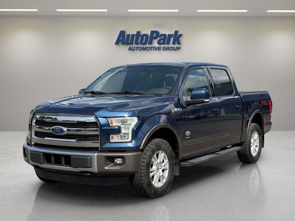 Vehicle Is Equipped With Equipment Group 600A Base, FX4 Off-Road Package (4x4 FX4 Off-Road Bodyside Decal, Front & Rear Off-Road Tuned Shock Absorbers, and Hill Descent Control), 4WD, 10 Speakers, 18" Machined-Aluminum Wheels, 4-Wheel Disc Brakes, ABS brakes, Adjustable pedals, Air Conditioning, All-Weather Rubber Floor Mats, AM/FM radio: SiriusXM, Auto tilt-away steering wheel, Auto-dimming door mirrors, Auto-dimming Rear-View mirror, Automatic temperature control, Brake assist, Bumpers: chrome, CD player, Compass, Delay-off headlights, Driver door bin, Driver vanity mirror, Dual front impact airbags, Dual front side impact airbags, Electronic Locking w/3.55 Axle Ratio, Electronic Stability Control, Extended Range 36 Gallon Fuel Tank, Exterior Parking Camera Rear, Front anti-roll bar, Front Bucket Seats, Front Center Armrest, Front dual zone A/C, Front fog lights, Front License Plate Bracket, Front reading lights, Front wheel independent suspension, Fully automatic headlights, Garage door transmitter, Genuine wood dashboard insert, Genuine wood door panel insert, Heated & Cooled Seats, Heated door mirrors, Heated rear seats, Heated steering wheel, Illuminated entry, Integrated Trailer Brake Controller, King Ranch Leather Bucket Seats, Low tire pressure warning, Memory seat, Navigation System, Occupant sensing airbag, Outside temperature display, Overhead airbag, Overhead console, Panic alarm, Passenger door bin, Passenger vanity mirror, Pedal memory, Power door mirrors, Power driver seat, Power passenger seat, Power steering, Power windows, Radio data system, Radio: Sony Single CD w/HD & SiriusXM Satellite, Rear Parking Sensors, Rear reading lights, Rear seat center armrest, Rear step bumper, Rear window defroster, Remote keyless entry, Security system, Speed control, Speed-sensing steering, Split folding rear seat, Spray-In Bedliner (Pre-Installed), Steering wheel memory, Steering wheel mounted audio controls, SYNC 3, Tachometer, Tailgate Step w/Tailgate Lift Assist, Telescoping steering wheel, Tilt steering wheel, Traction control, Trip computer, Turn signal indicator mirrors, Twin Panel Moonroof, Variably intermittent wipers, Ventilated front seats, Voice-Activated Navigation, and Voltmeter.