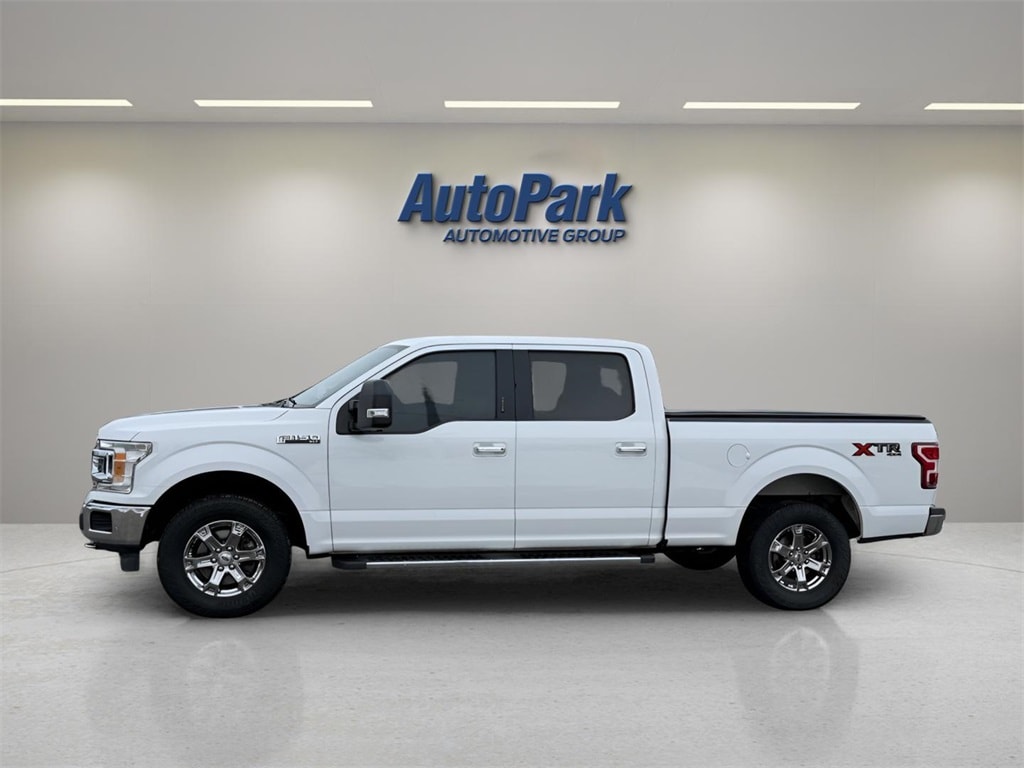 Vehicle Is Equipped With Equipment Group 300A Base, GVWR: 7,050 lbs Payload Package, Trailer Tow Package (Class IV Trailer Hitch Receiver, Pro Trailer Backup Assist, and Upgraded Front Stabilizer Bar), F-150 XLT, 4D SuperCrew, 5.0L V8, 10-Speed Automatic, 4WD, Oxford White, Dark Earth Gray w/Cloth 40/20/40 Front Seat, 4-Wheel Disc Brakes, 6 Speakers, ABS brakes, Air Conditioning, AM/FM radio, Brake assist, Bumpers: chrome, CD player, Compass, Delay-off headlights, Driver door bin, Driver vanity mirror, Dual front impact airbags, Dual front side impact airbags, Electronic Locking w/3.73 Axle Ratio, Electronic Stability Control, Emergency communication system: 911 Assist, Extended Range 36 Gallon Fuel Tank, Exterior Parking Camera Rear, Front anti-roll bar, Front Center Armrest w/Storage, Front fog lights, Front reading lights, Front wheel independent suspension, Fully automatic headlights, Illuminated entry, Integrated Trailer Brake Controller, Low tire pressure warning, Occupant sensing airbag, Outside temperature display, Overhead airbag, Panic alarm, Passenger door bin, Passenger vanity mirror, Power door mirrors, Power steering, Power windows, Radio data system, Radio: AM/FM Stereo/Single-CD Player, Rear reading lights, Rear step bumper, Remote keyless entry, Security system, Speed control, Speed-sensing steering, Split folding rear seat, Steering wheel mounted audio controls, SYNC, Tachometer, Telescoping steering wheel, Tilt steering wheel, Traction control, Variably intermittent wipers, Voltmeter, and Wheels: 18" Chrome-Like PVD.