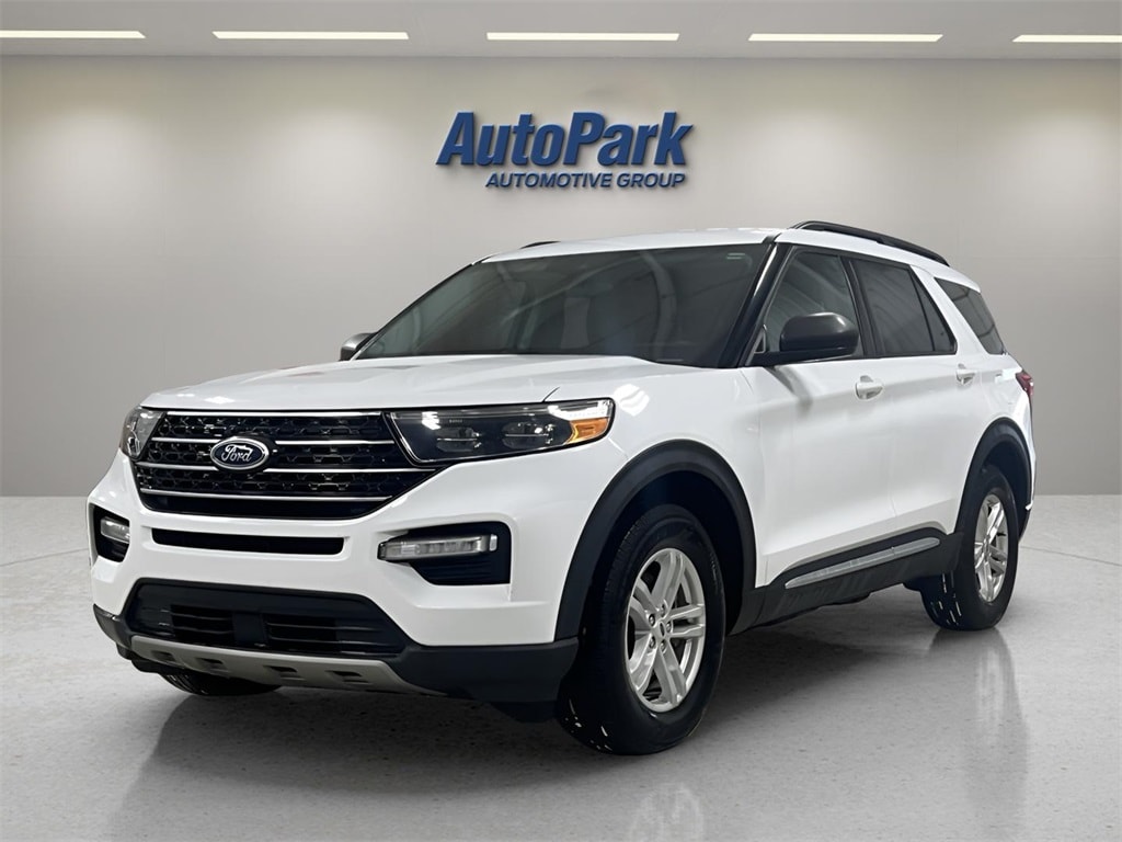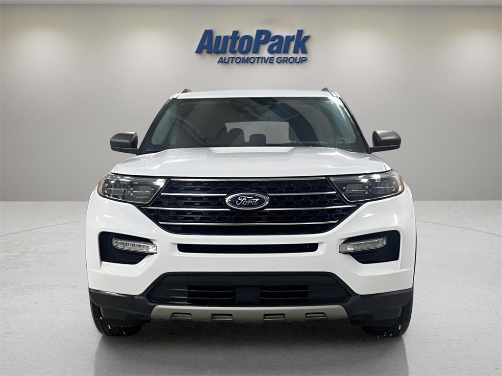 Vehicle Is Equipped With Equipment Group 202A (Acoustic-Laminated Front Side Windows, Heated ActiveX Captain's Chairs, Heated Steering Wheel, LED Fog Lamps, Remote Start System, and SecuriCode Keyless Entry Keypad), Explorer XLT, 4D Sport Utility, 2.3L EcoBoost I-4, 10-Speed Automatic, 4WD, Oxford White, Ebony w/Htd ActiveX Trimmed Captain's Chairs w/Miko Insert, 2nd Row 35/30/35 Bench w/E-Z Entry & Armrest, 3.58 Non-Limited-Slip Rear Axle Ratio, 3rd row seats: bench, 4-Wheel Disc Brakes, 4G LTE Wi-Fi Hotspot Credit, 6 Speakers, ABS brakes, Air Conditioning, Alloy wheels, AM/FM radio: SiriusXM, AM/FM Stereo, Auto High-beam Headlights, Auto Start-Stop Removal (DISC), Automatic temperature control, Brake assist, Bumpers: body-color, Compass, Delay-off headlights, Driver door bin, Driver vanity mirror, Dual front impact airbags, Dual front side impact airbags, Electronic Stability Control, Emergency communication system: SYNC 3 911 Assist, Exterior Parking Camera Rear, FordPass Connect, Four wheel independent suspension, Front anti-roll bar, Front Bucket Seats, Front Center Armrest, Front dual zone A/C, Front reading lights, Fully automatic headlights, Heated door mirrors, Heated Unique Cloth Captain's Chairs, Illuminated entry, Knee airbag, Leather steering wheel, Low tire pressure warning, Occupant sensing airbag, Outside temperature display, Overhead airbag, Overhead console, Panic alarm, Passenger door bin, Passenger vanity mirror, Power door mirrors, Power driver seat, Power Liftgate, Power passenger seat, Power steering, Power windows, Rear air conditioning, Rear anti-roll bar, Rear Auxiliary Controls Credit, Rear reading lights, Rear window defroster, Rear window wiper, Remote keyless entry, Roof rack: rails only, Security system, Speed control, Speed-sensing steering, Speed-Sensitive Wipers, Split folding rear seat, Spoiler, Steering wheel mounted audio controls, SYNC 3 Communications & Entertainment System, SYNC 3/Apple CarPlay/Android Auto, Tachometer, Telescoping steering wheel, Tilt steering wheel, Traction control, Trip computer, Variably intermittent wipers, and Wheels: 18" 5-Spoke Silver-Painted Aluminum.